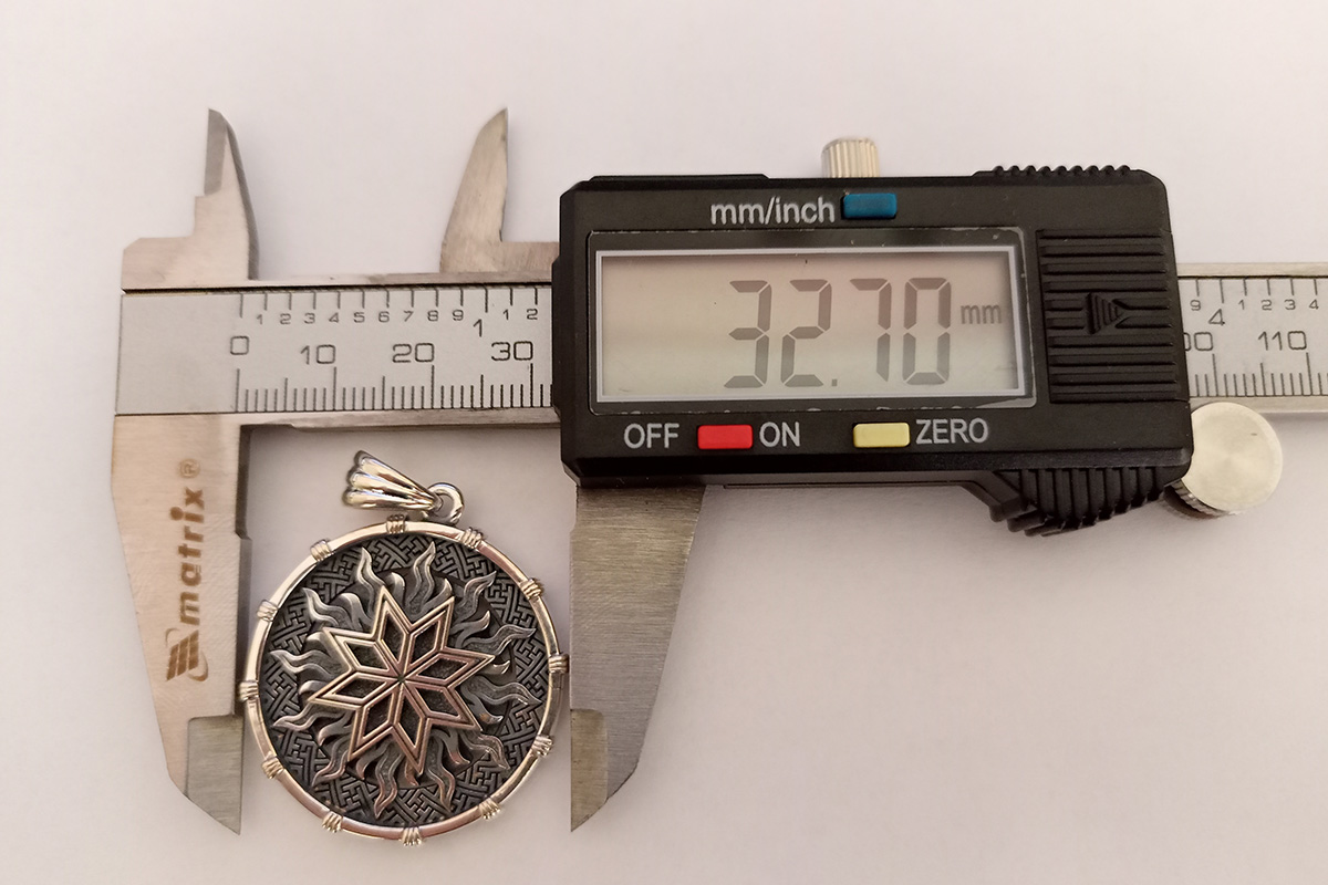 Алатырь с Солнцем (серебро с золотом), 30 мм